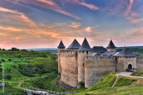 Khotyn fortress at sunset