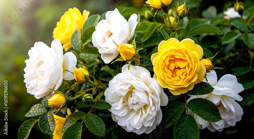 A Duet of Blooms: The Sun-Kissed Yellow and Ivory White Roses, Bathed in Gentle Light
