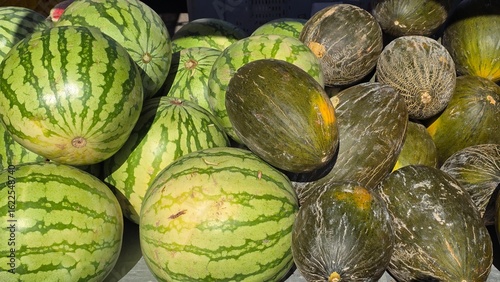 kolorowe owoce wyeksponowane targ Hiszpanaia cytrusy melony śliwki winogrona daktyle