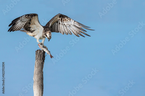 Lunch time, Eurasian osprey with European bass in the claw (Pandion haliaetus)
