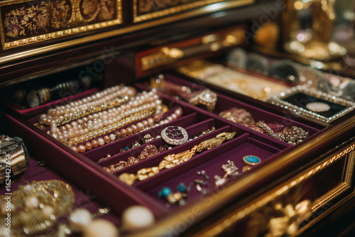 Ekskluzywna kolekcja biżuterii – lśniące pierścionki, naszyjniki i kolczyki w eleganckiej ekspozycji. Detal, który podkreśla luksusowy i kobiecy charakter przestrzeni.