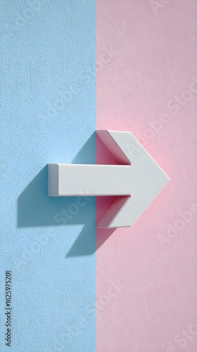 Central white arrow against a calm pastel palette of baby blue and blush pink