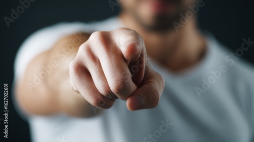 Male hand pointing directly to camera selective focus concept of recruitment leadership or accusation message