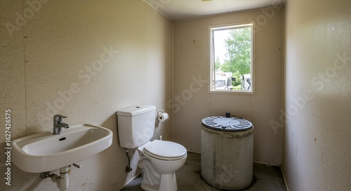 Bathroom Interior with Toilet, Sink and Laundry Tub