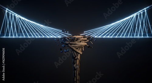A modern light bridge reveals a single, crumbling wood support, a powerful metaphor for a fatal flaw, technical debt, and a hidden systemic risk