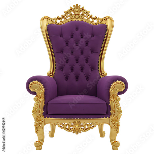 Luxury Purple Throne with Gold Frame – Elegant Royal Seat Illustration on Transparent Background