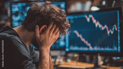 stressed business man crypto trader broker investor analyzing stock exchange market crypto trading decreasing chart data fall down loss desperate about losing money of crisis recession inflation no l