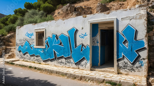 Vacation destination Chios Greece: Lost Places Lovokomeio Leper Colony. Graffiti on the wan and vandalism add to the design of this place.