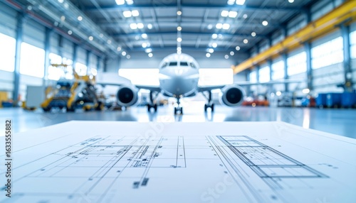 Classic propeller airplane illustration showing a vintage aircraft stored inside large, open hangar building, detailed sketch representing early aviation technology and transport.
