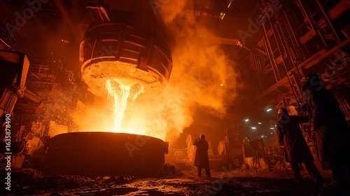 industrial steel mill foundry molten metal pouring manufacturing process heavy industry metallurgy factory production
