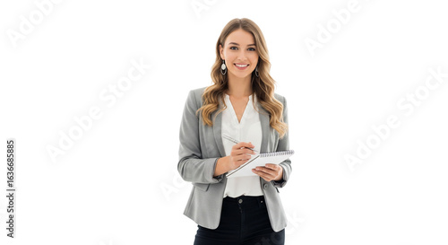 Blonde Frau – Notizblock und Stift, transparenter Hintergrund, PNG