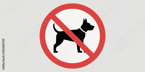 No dogs allowed sign graphic illustration prohibiting pets entrance red circle with a slash through a dog silhouette on a neutral background