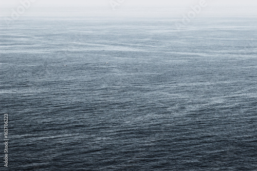 Shot of the vast Atlantic ocean, from the Northern coast of Spain, with boats far away
