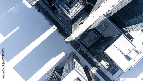 High-angle view of city skyscrapers and streets
