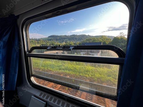 Widok przez okno w pociągu
