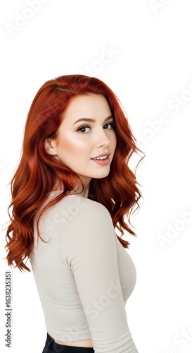 Rothaarige Frau – Schulterdrehung, transparenter Hintergrund, PNG