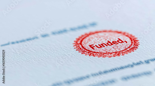 Medical Research Funding. A close-up of a research grant approval document stamped "Funded," symbolizing successful medical research financing