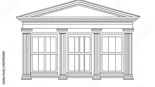 Architectural drawing featuring classical columns and windows of an elegant building