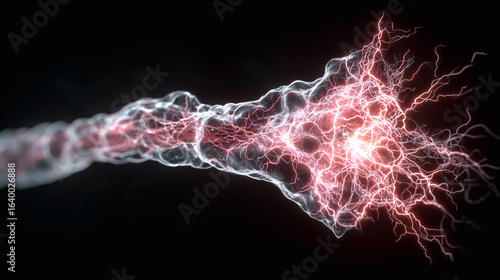 Ilustración 3D de neurona humana con impulsos eléctricos