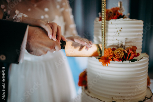 Para młoda kroi tort weselny
