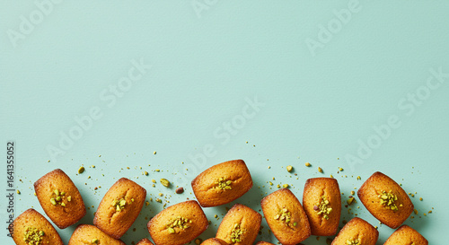 Overhead Pistachio Financiers with Nut Crumbs on Pastel Mint