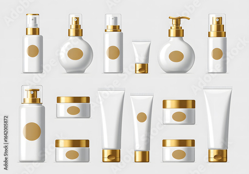 Diverse Set of Blank White Cosmetic Bottle and Jar Mockups