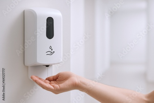 Hand Sanitizer Dispenser on Wall with Hand Receiving Soap for Hygiene Promotion