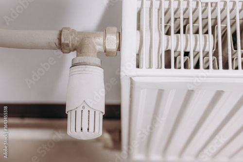 Mały kaloryfer w białym pomieszczeniu