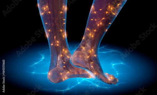 Restless Legs Syndrome RLS - Highlighted nerves showing Neuropathic foot and leg pain - 3D illustration