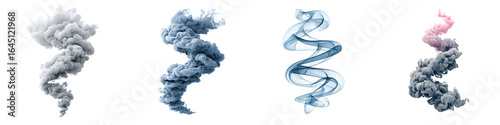 Collection of Colorful Smoke Trails on White Background, Abstract Design Elements