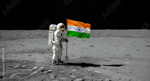 Indian astronaut plants flag on moon's surface, symbolizing space exploration