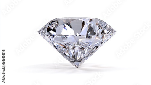 Close-up of a brilliant-cut diamond. Clear, flawless gem, showcasing facets. Perfect reflection