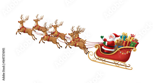 Santa Claus and Reindeer by Christmas Tree with Gifts