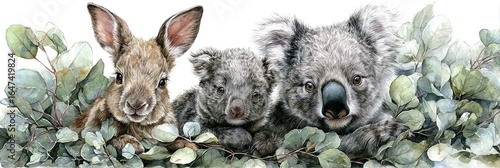 UROCZA AKWARELOWA ILUSTRACJA AUSTRALIJSKICH ZWIERZĄT