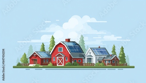 WIEJSKA SIELANKA Z PANELAMI SŁONECZNYMI - ILUSTRACJA W STYLU FLAT