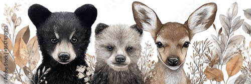 AKWARELOWE PORTRETY MŁODYCH ZWIERZĄT: NIEDŹWIADEK, BÓBR I SARNA