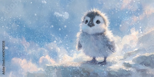 AKWARELOWY PISKLĘ MASKONURA NA SKALNEJ KRAWĘDZI