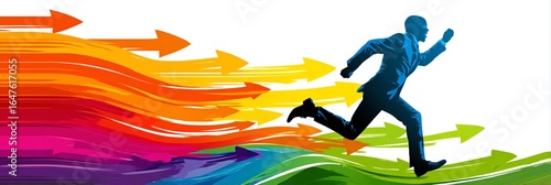 DYNAMICZNA SYLWETKA BIZNESMENA PĘDZĄCEGO NAPRZÓD
