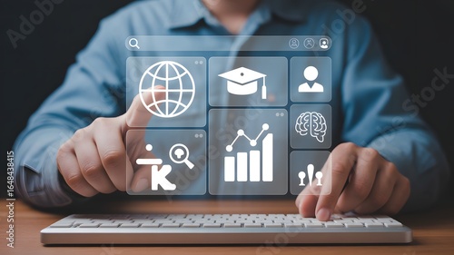 #1195085422Professional hands interact with a glowing digital interface illustrating the essential steps of a modern employee onboarding process.