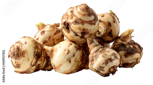 Pile of raw sunchoke root vegetables isolated on white