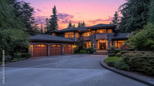 Luxury home sunset driveway landscaping real estate