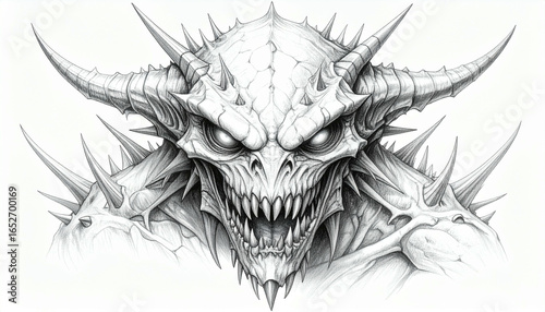 A menacing demonic creature, meticulously rendered in graphite, bares its fangs and horns.