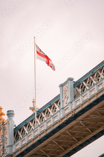 Flaga powiewająca na wietrze umieszczona na moście