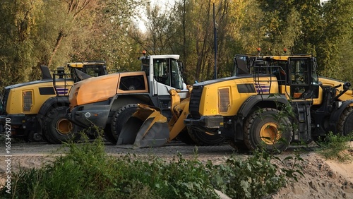 Koparki i koparko ładowarka. Sprzęt ciężki do robót drogowych.