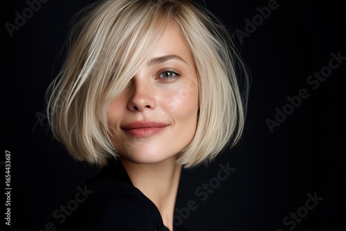 #1222940439Studio portrait of a woman with short, light blonde hair