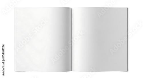 Open blank book or magazine with empty pages, top down view mockup. Isolated on transparent background, png