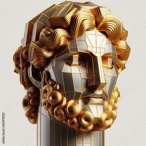 3d Geometric metallic gold and silver Greek sculpture statue head Illustration on a white background