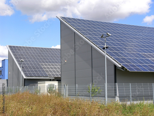 Zwei Gebäude mit Solarzellen