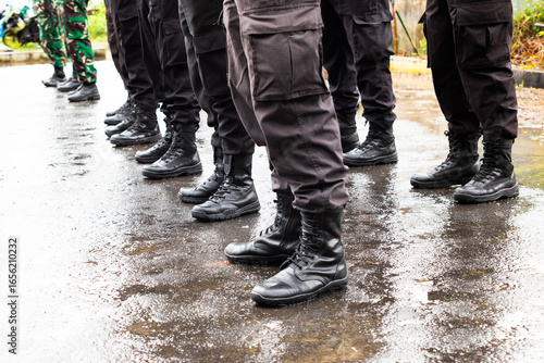 The feet of Indonesian politicians standing in perfect position