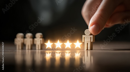 Achieving Excellence Top Performance Award Recognition Success Business Concept Wooden Figures Five Star Rating